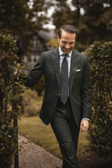 While I love the ease with which you can style a forest green flannel suit simply and classically, I think it really shines as a platform to indulge your more sartorial leanings. The combination of its unique color and more casual nature is makes it uniquely suited—sorry, not sorry, for the pun—to explore some more distinctive combinations, play around, and have a little fun.