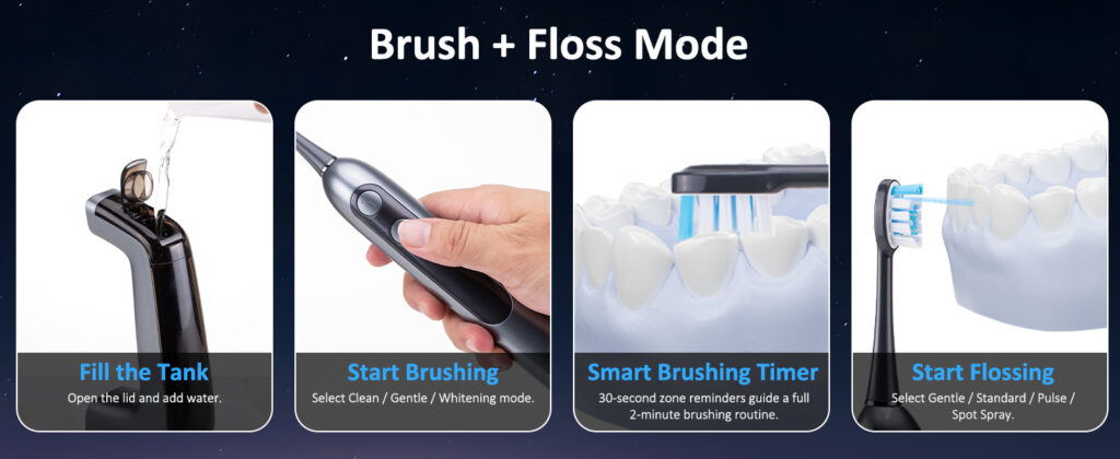 You are securing a noticeably deeper, dentist-level clean without adding any frustrating extra steps to your busy morning schedule. To ensure a comfortable experience, the unit is equipped with three brushing and four flossing selectable modes, making it perfectly safe for sensitive gums and those navigating the daily challenges of braces.